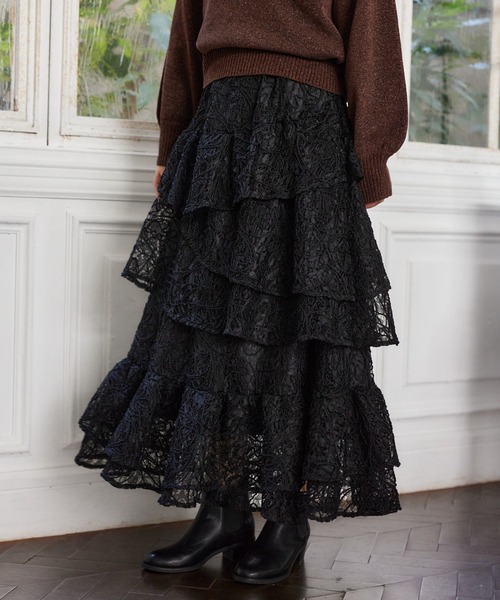 ーーー 起毛した柔らかなコードレースを使用したティアードスカート ■point ・起毛加工が施されているため、秋冬の季節にぴったりの温かみとふんわりとした質感を楽しめます ・レース部分はナイロンとポリエステルで、しなやかさと耐久性を兼ね備えています ・ティアードは裾に行くに従ってボリューム感をプラスし着用するだけで華やか見えに◎ ・裏地が付いており、透け感を気にせず安心して着用いただけます ーーー ■styling ハイゲージニットをINした着こなしがすっきり見えて、柔らかく優しい印象に。 ざっくりニットやカーディガンもゆるっとしたシルエットでリラックス感をプラスします。 レザーやミリタリーアウターを合わせて着るのもMIXコーデでおすすめの着こなしです。 ※素材の特性上モール糸の太さが部位によってランダムで現れます。1点1点表情感の変わるヴィンテージ感の強いアイテムになっております。 ※屋外の光や照明の当たり具合で、実際の商品の色味とカラー別画像の色味に若干の違いが発生する場合がございます。 詳細画像と併せてご確認の上、ご注文いただきますようお願い致します。 【INFOMATION】 ■商品のお気に入り登録 完売していても再入荷時に再入荷通知を受け取ることができますので、是非ご登録ください! ■ブランドのお気に入り登録 新商品や再入荷などの情報を受け取ることができますので、是非ご登録ください! ※ご注文いただいた予約商品のお届け時期の確認は、注文履歴ページより行えます。