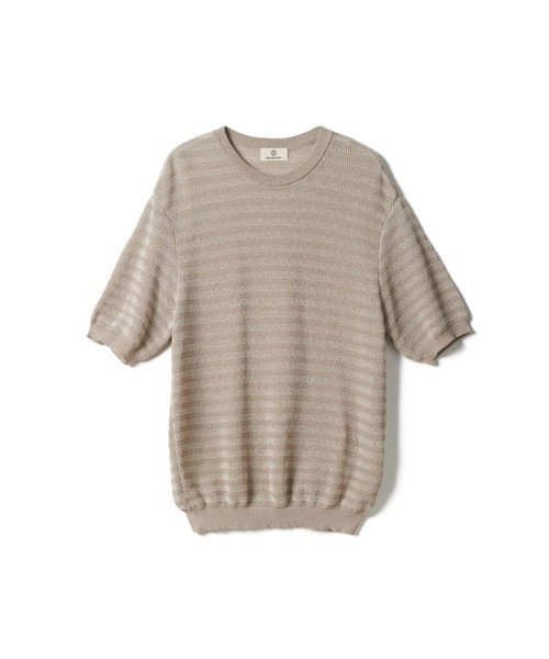 SEAGREEN(シーグリーン) PAPER KNIT BORDER T-SHIRT・抜け感のあるリラックスフィットシルエットのニットTシャツ・同系色の2色の糸を使うことにより、ボーダー状の仕上がりに・和紙混のポリエステル糸により麻のようなサラッとしたドライタッチを再現し、清涼感と軽量性に非常に優れた素材・透け感が気になりにくく、1枚でも安心して着用が可能メーカー品番:MSEA25S9086-K【SEAGREEN/シーグリーン】DOWN TO EARTH「日常を思考する」日常のできごと1つ1つをきちんと考える。朝の気配、服の心地、鳥の声。モノづくりを考える、服を楽しむ、素材にこだわる、技法にこだわる、フォルムにこだわる。なんとなくよかったイメージから、離脱する。現地にいって、森をみよう。バスにのって、旅にでよう。地に足を付け、自然を全身で感じよう。それこそが、私たちのクラフトマンシップ。
