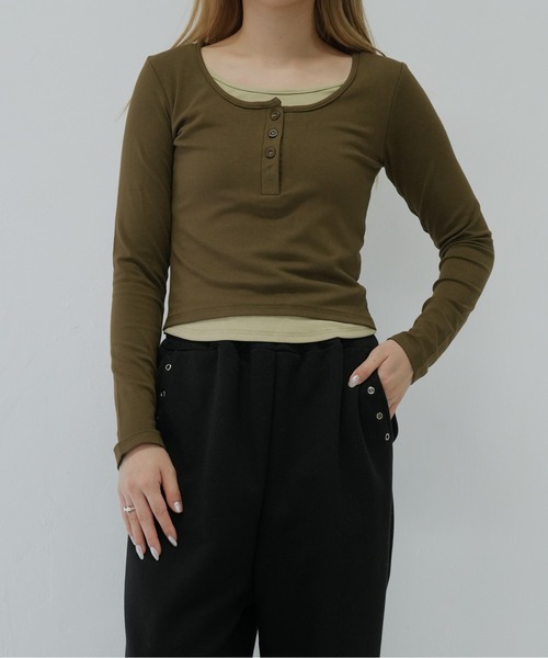 バイカラーレイヤード風トップス重ね着したような立体感が魅力の「バイカラーレイヤード風トップス」。レイヤードスタイルが簡単に完成する、忙しい朝にも頼れる優秀アイテムです。一枚で着てもサマになり、着るだけでトレンド感のあるバランスに仕上がります。 ■ デザインポイント カットソーを重ねたようなレイヤード風デザインが最大の魅力。 異なるカラーの裾やネック部分がちらっと見えるよう計算されており、一枚で着ても自然な抜け感と奥行きのあるスタイルを作り出します。 胸元のボタンディテールがアクセントになり、ベーシックな中にもほんのりモードな雰囲気をプラス。コンパクトなシルエットがスタイルアップ効果を生み、ボトムを選ばずすっきりと着こなせます。 ■ 着回し力抜群の2カラー ベーシックで着回しやすいブラックと、 トレンド感のある深みカラーのカーキの2色展開。ブラックはクールでシックな印象を演出し、デニムやスラックスに合わせるだけでモードカジュアルなスタイルが完成。カーキは柔らかくナチュラルな雰囲気で、ワイドパンツやスカートに合わせるとリラックス感のある大人カジュアルに仕上がります。 どちらもベーシックながら表情のある配色で、シーズンムードを高めてくれる万能カラーです。 ■ コーディネート提案 このトップスは、**“1枚でおしゃれが完成する”**をテーマにデザイン。シンプルなデニムやブラックパンツを合わせるだけでコーデがまとまります。また、ベストやジャケットのインナーとしても活躍し、秋冬のレイヤードスタイルに奥行きをプラスします。トレンドのカーゴパンツやミニスカートとも好相性。足元にローファーやスニーカーを合わせればカジュアルに、ブーツを合わせると一気に季節感のあるスタイルへ。1枚で完成するのに、重ね着のようなこなれ感が出せるため、毎日のコーディネートを簡単におしゃれに仕上げてくれます。 ■ 素材とシルエット 柔らかく伸縮性のあるカットソー素材を使用し、肌触りの良さと程よいフィット感を両立。動きやすく快適な着心地ながら、きれいめに見える仕立てがポイントです。ボディラインを拾いすぎない絶妙なコンパクトシルエットで、どんなボトムともバランスが取りやすく、インでもアウトでもすっきり。レイヤード風のデザインが縦のラインを強調し、さりげなくスタイルアップを叶えてくれます。 ■ トレンド要素 今季注目されているレイヤードスタイルを、一枚で簡単に楽しめるのがこのアイテムの魅力。秋冬に人気のバイカラーデザインを取り入れつつ、コンパクトなフォルムで“抜け感のあるミニマルスタイル”を実現しました。 11月のスタイリングキーワードである「レイヤード」「ベーシックカラー」「抜け感」「着回し」「カジュアルモード」などを自然に盛り込み、トレンドをしっかり押さえたデザインに仕上げています。 ■ スタッフおすすめポイント ・レイヤード風デザインで1枚でも重ね着見え・柔らかく伸びる素材でストレスフリーな着心地・ボタンディテールがさりげないアクセントに・ブラックはモード、カーキはナチュラルな印象に・コンパクトな丈感でボトムを選ばず着回し自在 ■ おすすめコーディネート ・ワイドデニム×スニーカーで抜け感カジュアル・ミニスカート×ロングブーツで大人フェミニンに・ジャケット×スラックスできれいめモードスタイルに・ニットベストを重ねて旬の秋冬レイヤードに ■ まとめ 「バイカラーレイヤード風トップス」は、一枚でレイヤードスタイルが完成する、おしゃれ見えと着心地の良さを両立した万能トップス。シンプルなのにこなれて見えるデザインで、どんなコーデにも馴染むのに存在感のある仕上がりです。 ブラックとカーキの落ち着いたカラー展開で、秋冬のワードローブに取り入れやすい一着。デイリーにもお出かけにも活躍する、“毎日着たくなる”アイテムです。 ---------------------------------------------------------------- ▼商品のお気に入り登録 お気に入りアイテムの値下げ・再入荷・在庫1点などの通知を受け取ることができます。 ▼ブランドのお気に入り登録 新商品や再入荷、セール、クーポン配布などお得な情報を受け取ることができます。