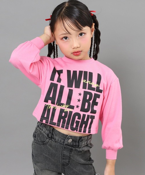 ポジティブなメッセージで、毎日がもっと楽しくなるクロップドスウェット。 ●大胆なロゴデザインが目を引く、存在感たっぷりのトレンドトップス。 ●軽やかなクロップド丈が今っぽく、動きやすさも抜群。 ●着るだけで気分が上がるメッセージプリントで、毎日のコーデに元気をプラスします。 ♦detail やわらかな裏毛素材を使用し、快適な着心地と軽さを両立。 袖口のリブがしっかりとしているので、動きの多い日でもシルエットをキープします。 コンパクトな丈感ながら身幅にはゆとりがあり、インナーを重ねてもバランス良く着られるデザイン。 カラーバリエーションごとに異なる配色ロゴが印象を変え、スタイリングの幅を広げます。 ♦styling 〇ストリート→デニム×スニーカーでアクティブにまとめる 〇ガーリーカジュアル→プリーツスカート×ヘアアクセで可愛らしく 〇韓国カジュアル→カーゴパンツ×キャップでトレンド感アップ ♦コーデにオススメ ベルト付 フリル プリーツ スカート【ジュニアお揃い】(421-3481) フレンジ フレア デニム パンツ【ジュニアお揃い】(422-3483) ----------- 伸縮性・・・あり 透け感・・・ホワイトのみ若干あり 光沢感・・・なし 生地の厚さ・・・ふつう ポケット・・・なし 裏地・・・なし ----------- <サイズ> 110cm 120cm 130cm ※商品のお取扱いに関しましては、商品に付属のアテンションカード、洗濯ネームをご覧ください。 ※モデル着用画像は光の当たり具合で色味が違って見える場合がございます。 ※商品の色味の目安は、商品単体の画像をご参照ください。 【お買いものをお楽しみいただく為に!】 ▼商品のお気に入り登録 完売カラーの再入荷通知や、ラスト1点の通知、セールの通知も受け取ることができます。 ▼ブランドのお気に入り登録 新商品や再入荷など、いち早くブランドのお得な情報を受け取ることができます。