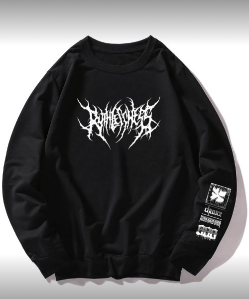 ■explanation ストリートカルチャーとモード感を融合させたグラフィックロングスリーブ。 胸元にはインパクト抜群のメタルコア風ロゴプリント、袖にはストリートアイコンデザインを配置。 オーバーサイズシルエットでトレンド感があり、1枚でもインナーでも活躍。 ユニセックスで着こなせるデザインなので、メンズ・レディース問わずストリートコーデに最適です。 ブラックを基調にしたクールな存在感で、モノトーンコーデや韓国ストリートにもマッチ。 秋冬の主役トップスとして、カジュアル・モード・古着MIXなど幅広いスタイルにおすすめ。 ■detail • メタルコア風グラフィックロゴプリント • 袖にストリートモチーフデザイン • ゆったりしたオーバーサイズシルエット • 厚手で柔らかなコットン素材 • メンズ・レディース兼用のユニセックスデザイン • ストリート/韓国ファッション好きにおすすめ • 秋冬のレイヤードスタイルにも最適 【商品画像について】 ※画像はサンプルです。実際の商品と仕様、加工、サイズ、カラーが若干異なる場合がございます。 また、撮影場所や照明の照射・角度、お使いのモニター環境によりお色味が異なる場合がございます。 予めご了承ください。 《お気に入り登録》 ・「商品のお気に入り登録」で再入荷通知や、ラスト1点の通知、セール通知も受け取ることができます。 ・「ブランドのお気に入り登録」で新商品や再入荷など、いち早くブランドのお得な情報を受け取ることができます。