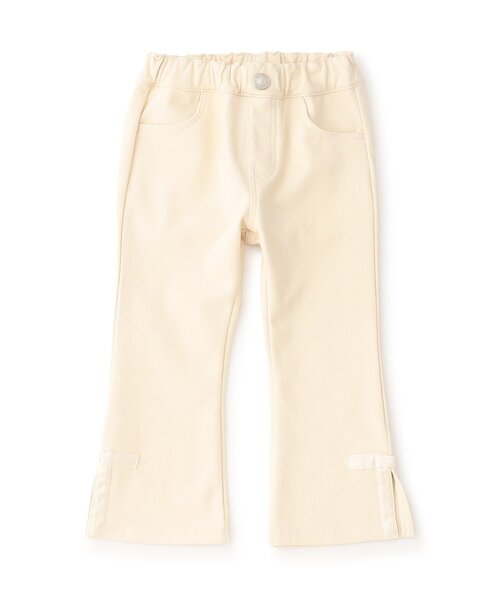 Seraph(セラフ)のパンツ「サイドリボン裏起毛フレアパンツ」は、シンプルなテキスタイルと優しい色使いでナチュラルテイストのおしゃれにおすすめです!【取り扱い表示】40℃を上限に洗濯機で洗濯、デリケートアイテムモード、ネット使用、漂白剤禁止、色物は同系の色と一緒に、洗濯後直ちに取出し、タンブル乾燥不可、日陰で吊り干し、アイロン禁止、商業ドライクリーニング不可【ご注意事項】インディゴ染め・製品染め加工この製品はインディゴ染料の使用または製品染め加工をしています。1点ごとに風合いや色の出方、サイズ等が微妙に異なる場合がございます。着用・洗濯時の摩擦や水濡れにより、色落ちをすることがございます。洗濯は単独洗いで、長時間濡れたまま放置しないようにご注意下さい。淡い色の衣類を着用の際は、十分にご注意いただき、他の製品に色移りした場合はすぐに洗濯してください。着用やお洗濯を繰り返すことにより、風合いや色の変化をお楽しみいただけます。この商品は着用中の摩擦や洗濯により毛羽の乱れ、毛羽脱落、毛玉が生じることが有ります。できるだけ美しくご利用頂く為に次のことにご留意下さい。○毛玉は毛玉取り器またはハサミで丁寧にカットして下さい。○毛羽が他に付着した際はテープやブラシで除去して下さい。○他の製品とは洗わず、単独でお洗濯して下さい。○タンブル乾燥はお避け下さい。※商品により多少の誤差が生じる事がございます。あらかじめご了承下さい。※ご使用のパソコンやブラウザの環境により、実際の色とは多少異なる場合がございます。※モデル着用写真についてはイメージの為、実際の商品とカラーや仕様が異なる場合がございますので、商品画像をご覧ください。【 SERAPH -セラフ- 】毎日に新鮮なアクセントが加えられるナチュラルなデイリーウェア。ファッションの流れに敏感な、おしゃれなママとキッズのために、クリーンで繊細なデザインとディテールをやわらかく温かみのある優しい素材で表現したブランド。ボーダー、チェック、ストライプといったシンプルなテキスタイルにトレンド要素をプラス、ナチュラルな色使いを大切にウェアから雑貨まで、キッズのカジュアルで少し上品なコーディネートを提案します。