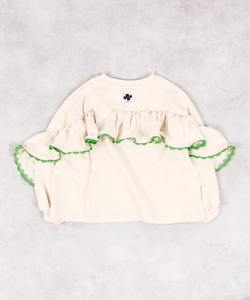 バックの大きなフリルが女の子らしさを演出♪■デザイン腕から背中まで広がったたっぷりフリルが印象的なトレーナー。フリルに施されたカラーテープの配色もアクセントになります。後ろ姿までカワイイとってもガーリーな1着です。■スタイリングあえてカジュアルなデニムとのスタイリングがオススメ。ストライプ柄や総柄のボトムスとも相性◎■生地感表面はフラットな平編み、裏面はループ状のパイルが特徴。柔らかな肌触りで適度な保温性があり、快適に着用いただけます。通気性にも優れ、ロングシーズン活躍する万能素材です。++++++++++++++++++++++++透け感:少しあり伸縮:あり厚み:普通++++++++++++++++++++++++※80~95cm のみ肩ボタン付き※ネームタグ付き※モデルが着用している画像は、照明や日光などの撮影時の環境により実物と異なる色味になる場合がございます。商品単体の平置き画像を実物に近いお色味になるよう努めておりますので、お色味のご確認は平置き画像をご参照くださいませ。※お使いのモニター環境によっても実物のお色味と異なって見える場合がございます。予めご理解の程よろしくお願いいたします。ハートマークをポチッ!気になる商品はお気に入り登録をお忘れなく!商品のお気に入り登録をすると...[再入荷][残り1点][セール情報]を受け取れます。MARKEY'Sをお気に入り登録すると...[新商品][再入荷]の情報をいち早く受け取れます。