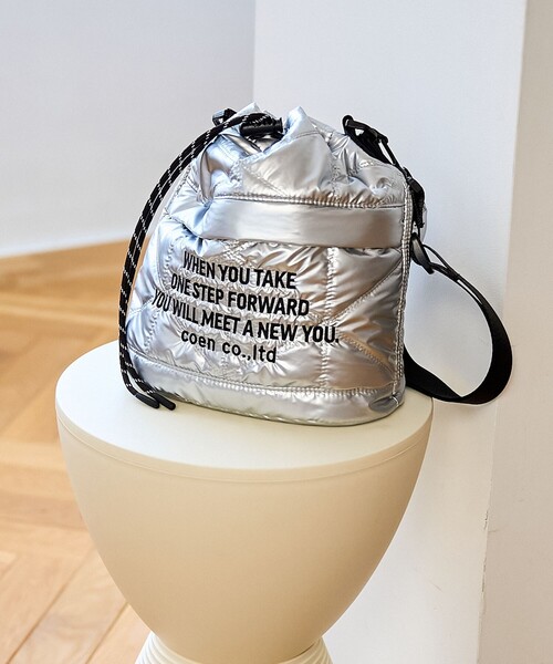 〈 coen 26SS collection 〉 丸みフォルムが愛らしい。2wayで楽しむキルティング巾着。 新色登場:ホワイト・ブラック ■同シリーズのご案内 ロゴ刺繍 幾何柄 キルト2wayショルダーバッグ(品番:76816000057) ロゴ刺繍 幾何柄 キルトトートバッグ(品番:76816000056) ロゴ刺繍 幾何柄 キルトランチトートバッグ(品番:76816000037) ロゴ刺繍キカキルトショルダーバッグ(Mサイズ)(品番:76816000025) ロゴ刺繍 幾何柄 キルト巾着ショルダーバッグ(Sサイズ)(品番:76816000063) ■デザイン/素材 幾何柄キルトバッグシリーズから、使いやすい巾着タイプのショルダーバッグが新登場。 フロントにはロゴ刺繍がアクセントとなり、シンプルながらもアクセントの効いたデザインに仕上げています。 内側には仕切り付きの内ポケットが2つあり、整理整頓も◎。さらに、外側の前面にはジッパー付きポケットも装備。 ショルダーストラップと持ち手の2way仕様で、気分やシーンに合わせて使い分け可能。 楕円形のフォルムでマチも広め、500mlのペットボトルも収まる大容量が魅力です。 ■バッグ色×刺繍色の組合せ■ ホワイト×くすみブルー シルバー×ブラック ブラック×オフホワイト 内ポケット:あり(仕切りつき) ショルダー取り外し:可能 【注意点】 ※ご使用中の摩擦や汗・雨など濡れた状態での他の物との接触は、色移りや素材自体の色ムラを起こす恐れがありますのでご注意下さい。 ※撮影商品はサンプルの為、実際の仕様と異なる場合がございます。 ※画像の商品は光の照射や角度、お使いのモニター環境により、実物と色味が異なる場合がございます。スタジオ物撮りの画像が実物の色味に一番近くなっております。 ※予約商品の場合、お届け予定はあくまでも目安となります。 生産の都合上、お届け時期が前後したり実店舗入荷時期とずれる場合がございますので、あらかじめご了承ください。 品名:ロゴシシュウキルトキンチャクショルダー 品番:76816000036