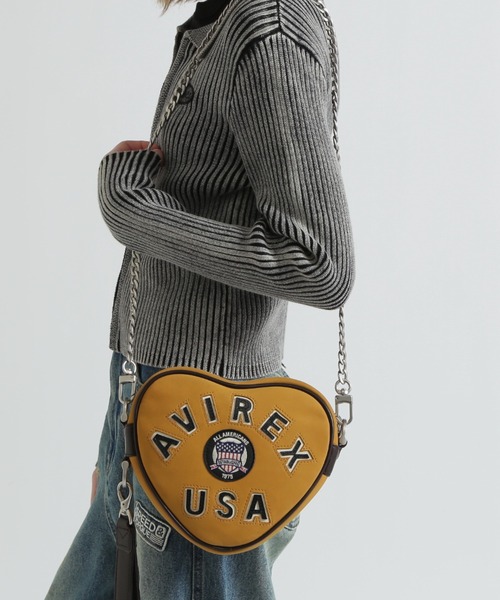 LX VARSITY LEATHER HEART CHAIN BAG・定番であり20年来、運用されているバーシティージャケットのデザインから デザインソースを抽出したブルト限定シリーズよりラグジュアリーな素材を採用・バーシティーロゴを手間のかかるくり抜き加工で表現・レオパード・・・柔らかくなめらかな肌触りと天然の光沢がある美しい毛並みが最大の特徴のメイン素材:馬革ヘアオンホースハイド・マスタード・・・本体素材にはシリーズ内で初めてのヌバックを採用してハンドル部などには本革を使用しており、季節を感じさせる配色・付属部は牛本革製。通常の革に比べで流通量も少なく希少な素材・斜め掛け用のショルダーベルトも付属しています。【AVIREX WOMAN】本格的なミリタリーウェアが持つ機能性とデザインをレディースカジュアルに投影したライン。個性的かつ時代性のあるレディースブランドとして聡明、自由、好奇心、凛として快活な働く大人の女性へ向けたレディスカジュアルを提案しています。【お買いものをお楽しみいただく為に!】▼商品のお気に入り登録完売カラーの再入荷通知や、ラスト1点の通知、セールの通知も受け取ることができます。 ▼ブランドのお気に入り登録新商品や再入荷など、いち早くブランドのお得な情報を受け取ることができます。