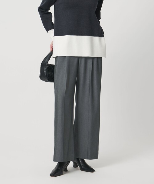 大人のカジュアルスタイルに活躍するデニムライクワイドパンツ■デザイン2タックでゆとりのあるストレートワイドなシルエットのパンツ。ジャストウエスト設定で後ろウエストのみ平ゴムを入れ、フィット感のあるはき心地です。デニムライクな生地感が大人のカジュアルスタイルを演出します。■素材縦糸にポリエステルのムラ糸、横糸に梳毛調合繊糸を使用し、デニムライクに仕上げた素材。■コーディネートコンパクトな着丈のニットやフィットシルエットのトップスを合わせることで、スタイルアップが叶います。・同素材のスカートもご用意がございます。対象品番:15241995324============================裏地:なし透け感:なし伸縮:ややあり光沢感:なしケア方法:手洗い可============================【注意事項】※商品に「取り扱い上の注意書き」、「洗濯表示」がございます場合は、使用前に必ずご確認ください。※商品画像は、光の当たり具合やパソコンなどの閲覧環境により、実際の色味と異なって見える場合がございます。あらかじめご了承ください。※商品の色味の目安は、商品単体の画像をご参照ください。店舗へお問い合わせの際は、全国のUNITED ARROWS各店舗まで下記の品名/品番をお申し付けください。品名:UBC P 2TUCK WIDE 70 DLK 品番:15141995456