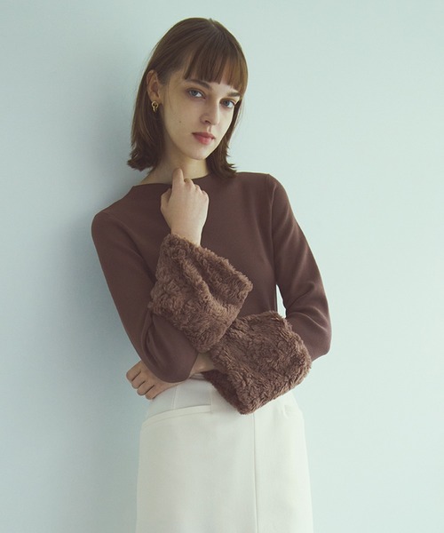 *シェルストレッチ滑らかな肌触りと程よいハリ感が魅力のシェルストレッチ素材に、袖口のフェイクファーが華やかなアクセントを添えるニットトップス。 身体のラインを拾い過ぎない、すっきりとしたシルエットでありながら、ストレッチ性のある素材が快適な着心地を叶えてくれます。 手元にふんわりとボリュームをもたせることで、シンプルながらも女性らしい印象に。 ボトムスを選ばず着まわせる、秋冬のスタイリングに重宝する1枚です。 洗濯:洗濯機使用可能(ネット使用) 《お気に入り登録》はお得がいっぱい! 「商品」のお気に入り登録で、再入荷、ラスト1点、セールなどお得な通知を受け取ることができます。 「ブランド」のお気に入り登録で、新商品や再入荷などいち早くブランドの情報を受け取ることができます。 是非、この機会にご登録くださいませ。