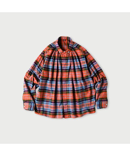 ジャブジャブ洗濯をしても丈夫で、袖を通す度、いつでもフレッシュな毎日着たくなるシャツ。そういうシャツを目指して、504オックスの生地を織っています。糸の太さも引き揃える本数も今年の綿花と相談しながら、膨らみと風合いを追求しました。カジュアルさと品の良さが持ち味。実りの秋を感じる、こっくりとした色合いの元祖タータンチェックをゆっくりと織り上げました。ありそうでなかった、タックブラウスのボタンダウン。エレガントで伝統的な縫製にこだわりました。こちらはオーダー刺繍対象製品です。刺繍をご希望される場合はこちらよりご注文ください。シャツの特集はこちら