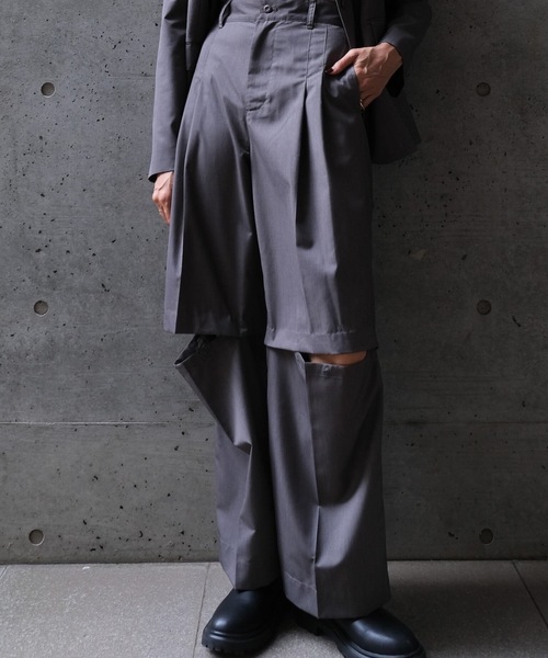 ■着用■BROWN:173cm,160cmGRAY:168cm■コメント■下半身がすっきりとみえるよう、こだわりの詰まったハイウエスト美脚パンツ。3WAYでお使いいただける為、オフィスからオフのシーンまで活躍してくれるアイテムです。■スタイリング■SLIT JACKET(スリットジャケット)【5533587】とのセットアップ着用がおすすめです。きれいめなブラウスからカジュアルなスウェットやTシャツとの合わせもok!ハーフパンツタイプにしてロングブーツと合わせると、旬なコーディネートが完成します。■骨格タイプコメント■ナチュラル▼骨格ナチュラルの方はタック入りパンツが得意!四角い腰回りをきれいにカバーしてくれます。ビッグシルエットなトップスと合わせて、とことんゆるっとカジュアルなスタイリングが◎ウェーブ▼ワイドパンツは脚のラインを消してしまうので、骨格ウェーブさんにとっては苦手なアイテム。ですがこちらはハイウエストなデザインなので、トップスをインしたり、ウエストマークすることで重心を上に上げてくれ、スタイルアップ効果に!ストレート▼重心が上のほうにありウエスト位置が高いストレートタイプの方は、ゆるっとしたトップスよりもきっちりとしたデザインの物と合わせることで、だらしない印象を解消してくれます!また、抜け感のあるシアー素材の物や、Vネック、ノースリーブを着ていただくと重たくならず、すっきりとした大人綺麗なスタイリングに。【原産国】中国【Product Number】5533637【Color】BROWN,GRAY【Size】38【Size Chart】着丈 104ウエスト 70HIP 98渡り 37股上 26.5股下 73【Material】ポリエステル 80%レーヨン 20%※商品画像はサンプルのため、色味やサイズ、素材の混率等の仕様に変更がある場合がございますので、予めご了承ください。【お手入れ方法】クリーニングネットを使用して下さい。濡れたままの放置や長時間の浸漬はしないで下さい。アイロンは、当て布を使用してください。摩擦や引っかけに、ご注意下さい。移染しやすいので、他のものと分けて洗濯して下さい。釦部分はアイロンを当てないで下さい。【商品について】商品の品質には万全を期しておりますが、万一ご注文の商品と内容が違う場合や商品の破損、傷みなどの 品質上問題のある不良品がございましたら早急に返品・交換の対応をさせていただきます。【返品交換について】お客様により良い商品をお安くご提供するため、当店では不良品以外の返品・交換は一切お受け致しておりません。ご注文の際は、よくご確認の上お申し込みいただけますようお願い致します。