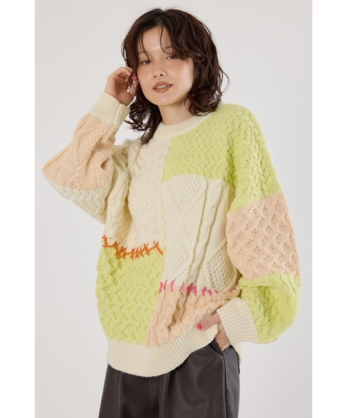 AUTUMN & WINTER ( 秋服 / 冬服 )■ポイント毎年大人気な商品です。数種類の編地をパッチワークしたようなデザインのケーブルニット。今季はさらに配色カラーのブランケットステッチも入り、さらにアップデート。■ディテール腰回りをすっぽり隠してくれるオーバーサイズです。着るだけでコーディネートがサマになる、デザイン性抜群のアイテムです。■スタイリングスッキリとしたナロースカートやフレアデニムを合わせれば、全体にメリハリが出てスタイルアップ◎。■生地※ドライクリーニング対応※ONE&ONLY札付き多様な編み柄や色糸を切り替えているため、リンキング(縫製糸)が表に出る場合がございます。こちらは生産工程上やむを得ない仕様であり、不良品ではございませんので、あらかじめご了承ください。ピリングなどが発生した場合は、はさみなどできれいにカットしてください。ローゲージのザックリしたニット商品ですので、ハンガー掛けの際に襟元などが伸びます。サイズ違いの原因にもなりますので、こまめにハンガーから外すなどご注意下さい。■透け感:なし■裏地:なし■伸縮性:なし■光沢感:なし[注意事項]※画像の商品はサンプルです。実際の商品と仕様、加工が若干異なる場合があります。※画像の商品は光の照射や角度、お使いのモニター環境により、実物と色味が異なる場合がございます。※着用、お取り扱いの際は、アテンションタグをご確認ください。※弊社管理上のカラーを表記しており、タグのカラー表記と異なる記載となっている場合がございます。▼商品のお気に入り登録お気に入りアイテムの再入荷・在庫1点などの通知を受け取ることができます。▼ブランドのお気に入り登録新作アイテムの入荷や人気アイテムの再入荷、おすすめトピックスなど、いち早くブランドの情報を受け取ることができます。※こちらの商品は、RODEO CROWNS WIDE BOWL 独自の採寸方法となっています。本サイトのサイズガイドと採寸方法が異なる場合がありますのでご了承ください。