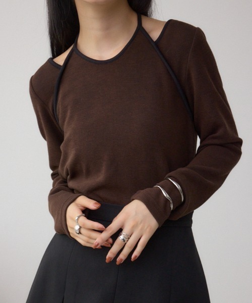 ■ホルターレイヤードトップス ■ポイント トレンドのディテールのホルター仕様のフェイクレイヤードトップスです。 ■ディテール 鎖骨がキレイに見えるネックデザインにしているので、レイヤードした時に抜け感を演出した大人な着こなしに。 ■スタイリング カジュアルなワイドパンツから、フェミニンなスカートまで、幅広いアイテムと合わせやすく、さまざまなコーディネートに対応できます。 ■生地 伸縮性のあるWフェイスを使用。 透け感:なし 裏 地:なし 伸縮性:あり 光沢感:あり [注意事項] ※画像の商品はサンプルです。実際の商品と仕様、加工が若干異なる場合があります。 ※画像の商品は光の照射や角度、お使いのモニター環境により、実物と色味が異なる場合がございます。 ※着用、お取り扱いの際は、アテンションタグをご確認ください。 [お気に入り登録のおすすめ] ■商品のお気に入り登録 お気に入りアイテムの再入荷・在庫1点などの通知を受け取ることができます。 ■ブランドのお気に入り登録 新作アイテムの入荷や人気アイテムの再入荷、おすすめトピックスなど、いち早くブランドの情報を受け取ることができます。 AUTUMN & WINTER ( 秋服 / 冬服 ) ※こちらの商品はAZUL BY MOUSSY独自の採寸方法となっています。本サイトのサイズガイドと採寸方法が異なる場合がありますのでご了承ください。