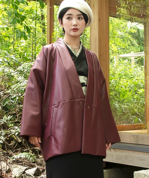 肌馴染みの良い柔らかな合成皮革を使用した羽織。ゆったりめなサイズ感で、性別問わずご着用いただけます。 着物の上からでも着られるようにアームホールを広く取っていますので、和装、洋装のどちらにも合わせやすいアウターです。 ◆カヤ◆ 古くから伝わる日本の伝統と新しい文化の融合。 「新しいカタチの日本」に出会える倭物ブランド【カヤ】 「文明開化」をテーマに、倭モダンで色彩あふれる刺激的な和雑貨を提案していきます。 ※こちらの商品は1点1点職人による手作りとなります。その為、形や色合いなど若干異なる場合がございます。あらかじめご了承ください。※屋外での撮影画像は、光の当たり具合で色味・カラーが違って見える場合がございます。商品のカラーは、スタジオ撮影の画像をご参照ください。 Amina Collection Co.,LTD.