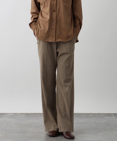 オンオフ兼用でデイリー使いに最適使いやすい素材と美シルエットが魅力のイージーパンツーーー【素材】肌離れの良いドライタッチなウォッシャブル素材を使用。ストレッチ性があり、シワにもなりにくくデイリー使いにぴったりです。【デザイン】お手入れ簡単で綺麗見えするシルエットが魅力のイージーパンツ。きれいめな印象のデザインなので、お仕事にも最適な一着です。洗濯機がご使用いただけるので、普段使いに大活躍するアイテムになっています。ーーー【スタイリング】シャツやブラウスと合わせてきれいめなスタイルでも、ニットやスウェットなどでカジュアルなスタイルでもオンオフ兼用でご着用いただけます。