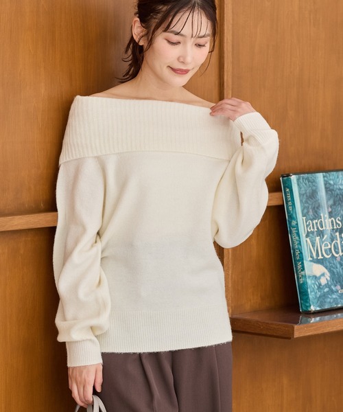 包み込まれる『軽ふわっニット』 【デザイン】 程よい肌見せが叶うオフショルダーデザイン。 すっきりめの幅と腰にかかる感。 ボリューム袖でフェミニン感アップ。 【素材・機能】 環境に優しい再生ポリエステルを使用した、ふわふわで軽く包み込まれるようなやわらかさのウール混『軽ふわっニット』素材。 【スタイル】 フレアやマーメイドのスカートと合わせたきれいめスタイルはもちろん、デニムと合わせたカジュアルスタイルにも、幅広く活躍。 シャツをインナーにしたレイヤードもおすすめ。 品番:533-31-1534
