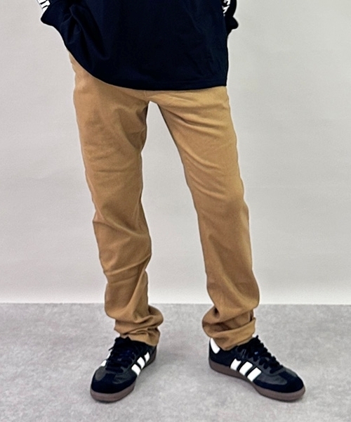 スーパーストレッチツイルを使用した定番のスリムパンツです。伸縮性に優れており動きやすいのがうれしいポイント。寒い季節でもあたたかく着用できる裏起毛素材を選びました。トレンドに左右されないシンプルなデザインも魅力的。細身できれいなシルエットが人気で、着こなしの幅を広げるアイテムとしておすすめです。【おすすめの着用時期は秋冬シーズン】【透け感】透けない【生地の厚さ】普通【伸縮性】あり【裏地】なし【ポケット】あり【アジャスター】あり