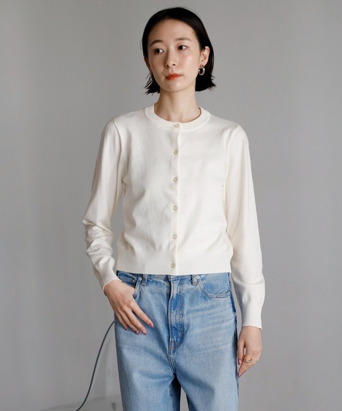 着まわし力抜群のクルーネックニットカーディガンシンプルながらも、 こだわりのディテールでさりげなくおしゃれを演出します ◼Point ・程よいコンパクトシルエットと絶妙なディテールで、オンオフ問わず使える一枚 ・袖口&裾はリブ仕様:フィット感があり、全体のシルエットにメリハリを演出・袖をくしゅっとたくし上げるだけで、ニュアンスあるスタイリングに ・高見えするきれいめカーディガン・バッグに忍ばせれる厚みなので寒暖差にお役立ち◎ ◼Coordinate ・スラックス、デニム、スカートなど、あらゆるシルエットにマッチ・ボタンを閉じればプルオーバー風にも着られ、着回しの幅が広がります ・トップスを重ねて着用することも可能です ・肌寒い日の軽いアウター代わりとしても重宝 ・ストレートデニムと合わせてフレンチカジュアルコーデがきれいにまとまっておすすめです ◼Fabric ・やや厚手のハイゲージニット生地 ・ふんわり柔かくもちもち素材 ………………………………… 裏地:なし 透け感:なし 伸縮性:あり 生地の厚さ:普通 ポケット:なし ………………………………… 【お買い物におすすめの便利機能】▽商品のお気に入り登録完売カラーの再入荷時や、ラスト1点の通知、セール開始もお知らせ致します。 ▽ブランドのお気に入り登録新商品や再入荷、クーポン配布やセール情報など、いち早くブランドのお得な情報を受け取る事が出来ます。ぜひご活用ください♪ ※撮影時のライティング、ご覧になっているモニター・PC環境により、実際の商品と色味が異なって見える場合がございます。予めご了承をお願い致します。 ※ご注文いただいた予約商品のお届け時期の確認は、注文履歴ページより行えます。 ※他のキャンペーンにより、期間中に価格が変動する場合があります。 ※セールは予告なく終了させていただく場合もあります。