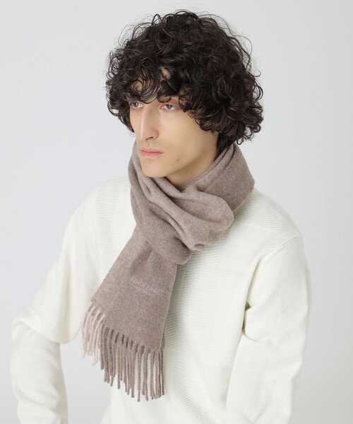 【汎用性抜群のバイカラーソリッドマフラー】ワンポイント刺繍のブランドロゴがアクセントのバイカラーソリッドマフラー。汎用性抜群でギフトにも最適です。温かみのあるウールにカシミヤをブレンドした柔らかい風合いの素材を使用しています。
