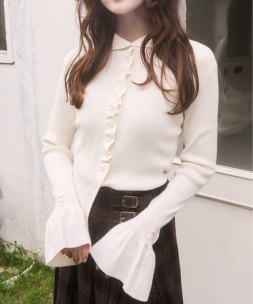 2wayの着方が楽しめるリブニットが登場。襟にしてもボタンを全部閉めてハイネックにもできます。フロントと袖口のさりげないフリル×ボタンが大人っぽさと甘さを両立してくれる絶妙なバランス。裾はインでもアウトでもご着用いただけます。片側のみインすると、スタイルアップ効果&トレンド感のあるコーデが完成します。シンプルながらもデザイン性のある仕様で、1枚でもビスチェやカーディガンと合わせるなど合わせ方次第で無限にコーデの幅を広げられる優秀アイテムです。 着用の商品写真は、サンプルでの撮影のため、色味や加工の見え方に若干の違いがある場合がございます。予めご了承ください。また、お使いの端末やモニターによってもお届けの商品と多少の差が生じる可能性がございます。