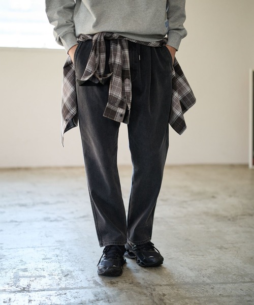 ーーーPOINT[1] 裏起毛のストレッチデニム生地[2] ワンタック入りでキレイめにもカジュアルにも合わせやすい[3] ベルト裏やポケット袋布に起毛素材を使用することで、真冬に履いた時のヒンヤリ感を軽減ーーー[fabric]裏側に起毛をかけたストレッチデニム生地を使用。[design]ワンタック入りのイージートラウザー型デニム。ウエストがゴムとスピンドルのイージーパンツ仕様。前中心のベルト下からファスナー明きがあるのも嬉しいポイント。ベルト裏やポケット袋布に起毛素材を使用することで、真冬に履いた時のヒンヤリ感を軽減。腰回りがゆったりとしていて、裾にかけて緩やかにテーパードしたシルエット。[styling]キレイめにもカジュアルにも合わせやすい、シルエットでトップスに何を合わせても大人っぽく決まるボトム。-------------------------------------≪お買い物をよりお楽しみいただくために≫◆商品のお気に入り登録(ハートマークをクリック)完売カラーの再入荷通知や、完売間近の通知、セールの通知も受けることができます。◆ブランドのお気に入り登録新商品や再入荷など、いち早くブランドのお得な情報を受け取ることができます。-------------------------------------