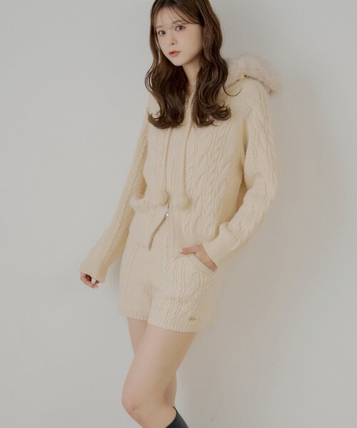 ほっこりとしたケーブル編みが、大人の可愛らしさを引き立てるケーブルショートパンツ▶商品ポイント・立体感のあるケーブル編みが、シンプルなコーディネートに奥行きとニュアンスをプラスしてくれます。・裾のブランドロゴが、さりげないワンポイントアクセントに。・ 短すぎない丈感なため、安心して着用できます。▶スタイリングポイント・同素材のケーブルニットと合わせてセットアップで着るのが可愛くておすすめです。・シンプルなデザインのため、柄物アイテムと好相性です。・ふんわりニットやブラウスと合わせると、フェミニンなスタイルに。・足元はブーツやスニーカーなど、合わせるアイテムによって様々な表情が楽しめます。▽セットアップ対応アイテムポンポン付きファーフードケーブルニットカーディガン【CHZ1052405A0006】▶洗濯表示洗濯:手洗い可タンブル乾燥:不可アイロン:不可クリーニング:ドライ・ウエット可※取り扱い注意事項(詳しいお手入れ方法は商品タグをご参照ください……………………透け感:なし厚さ:普通伸縮性:あり裏地:ありポケット:ありファスナー:なし……………………--------------------------------------------▼お気に入り登録のおすすめ▼ハートをクリックしてお気に入りに登録すると完売カラーの再入荷や残り1点の通知、セールの通知を受けとることができます。▼ブランドのお気に入り登録▼新商品や再入荷、セール通知やショップのおすすめトピックスなど、いち早くブランドの情報を受け取ることができます。▼メルマガ登録▼Chicoのお得な情報やニュースを一足先にお届けします。--------------------------------------------※商品について・サイト上のカラー名と、お届け商品に記載されているカラー名が異なる場合がございます。・商品の色味は、撮影場所や光のあたり具合などにより色味が違って見える場合がございます 。また、お客様のお使いのPCのモニター環境などにより色味が違って見える場合がございます。予めご了承の上ご注文下さい。・セールは予告なく終了させていただく場合もございます。※商品ページでは、遅延などの影響も考え、お届け予定時期を少し先に設定させていただいております。予約商品は商品ページに記載しているお届け予定時期よりも早いお届け予定になる場合がございますので、予めご了承ください。※返品・キャンセルについて・着用、洗濯後の返品、交換は致しかねます。・商品到着後、着用前に商品を確認して頂きますようお願い致します。※画像の商品はサンプルです。実際の商品と仕様、加工、サイズ、素材が若干異なる場合がございます。※ご注文いただいた予約商品のお届け時期の確認は、注文履歴ページより行えます。