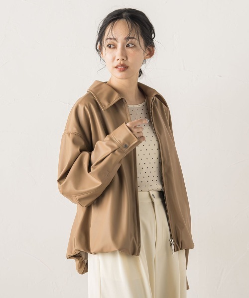 トレンド感のあるステンカラーに裾のバルーンフォルムが印象的なフェイクレザーブルゾン。 モードな雰囲気でありながらもバルーンのディテールで鮮度とソフトな甘さをプラスしてくれます。 ”呼吸する素材”とうたわれる透湿機能付きで蒸れを気にせず着ていただけます。 更に防風機能もあり寒い時期に向けても見た目以上に長いシーズンで着用できる1枚です。 フロントのダブルジップで着こなしアレンジも自在です。 同素材スカート(3811-57072)とのセットアップ着用もおすすめです。 ---------------------------------------------------------------- 洗濯方法 家庭洗濯:液温は30℃を限度とし、洗濯機で非常に弱い洗濯ができる。 自然乾燥:日蔭の吊り干しがよい。 アイロン:アイロン仕上げ禁止。 ドライクリーニング:石油系溶剤による弱いドライクリーニングができる。 ---------------------------------------------------------------- ※画像の商品はサンプルとなりますので実際の商品と仕様、加工、サイズが若干異なる場合がございます。 ※お客様のモニター環境により実際のお色と多少異なる場合がございます。 ※撮影状況や光の当たり具合により、色合いが異なって見える場合がございます。 ※商品タグに記載されたサイズはヌードサイズです。実際の商品のサイズは商品情報の実寸をご確認ください。 --------------------------------------------------------------------▼商品のお気に入り登録 ハートマークをクリックし、お好きなカラーを選んでお気に入りに登録 完売カラーの再入荷通知や、ラスト1点の通知、セールの通知も受け取ることができます。 ▼ブランドのお気に入り登録 新商品や再入荷等、いち早くブランドのお得な情報を受け取ることができます。 --------------------------------------------------------------------