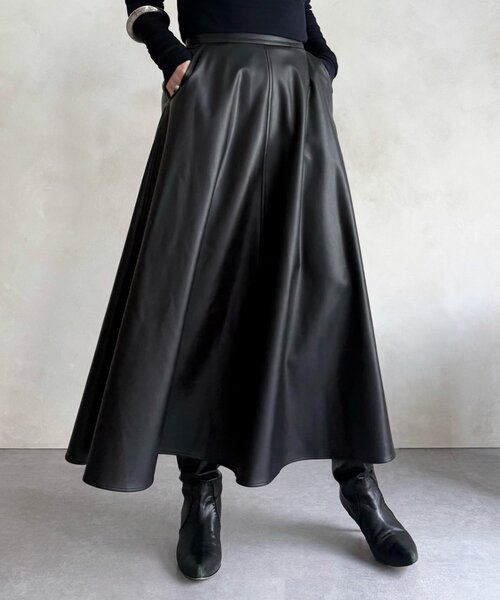 ■アイテム柔らかな質感が魅力のフェイクレザー素材を使用したロングスカート。ストレッチ性の高い生地が身体の動きにしなやかに寄り添い、レザー特有の硬さを感じさせない快適な着心地に。後ろウエストのみゴム仕様で、すっきりとした見た目ながらサイドファスナーで着脱もしやすいのが嬉しいポイント。控えめな光沢が大人の品を添え、ハードになりすぎず女性らしく着こなせる一枚です。■素材・洗濯表示素材:ポリエステル100%洗濯表示:ドライクリーニング※着用時・洗濯時は、必ず取扱い表示・タグをご確認の上、お取り扱い下さい。----------------------------------伸縮性:あり光沢:あり厚み:うすい透け感:なし裏地:なしポケット:あり(両サイド)ファスナー:あり----------------------------------《お取り扱い上のご注意》・タンブル乾燥不可・合成皮革を使用している為、経年劣化があります。《予約商品について》・サンプルの為、素材情報、洗濯表示については企画段階の情報を記載しております。公的機関での試験データ結果を受け、量産にあたり混率や洗濯方法の変更が発生する場合がございますので、ご了承くださいませ。・サンプルでの撮影、計測をしております。商品の仕様が一部変更になる場合がございます。・撮影サンプル品はブランドタグがついておりません。製品にはタグがつきますので、製品の表に縫い糸が見える場合がございます。・工場の生産の都合上、納期が変更になる場合がございます。検品や輸送の関係で、発送日が前後しますのでご了承ください。また、入荷状況により、お客様への発送が店頭販売より遅れる場合もございます。・店頭に陳列していた商品も含まれる場合がございます。《商品画像について》ご覧頂いている商品の写真につきましては、できるだけ実物の色に近くなるように努めておりますが お使いの環境(モニター、ブラウザ等)の違いにより、色の見え方が実物と若干異なる場合がございます。 予めご了承ください。《ハートをタップして商品のお気に入り登録》【ハートをタップ】登録カラーの商品の「残りわずか」「再入荷」「値下げ」通知を受け取ることができます。【各ショップアプリにてブランドフォロー】 新商品などの入荷情報、最新のニュースやお得な情報を受け取ることができます。