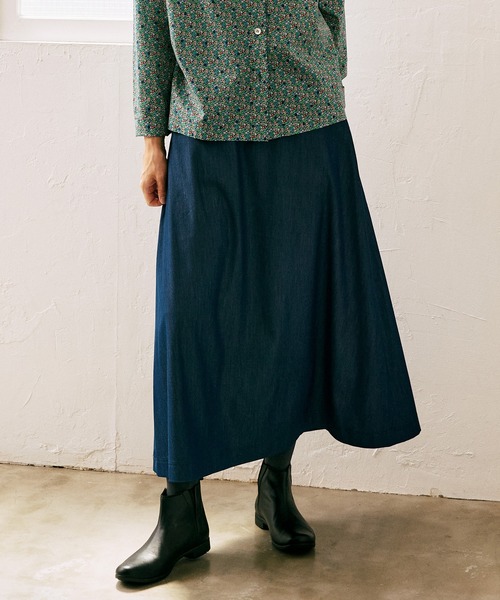 程よいAラインが女性らしい微起毛デニムスカート表面が微起毛素材で仕上げた、きれいめデニムスカート。落ち感のある素材で着心地が良く、程よいAラインのトラペーズシルエットがどんなトップスともバランスよくまとまります。 カジュアルにもきれいめにも対応できる、秋のスタイリングに活躍する1枚です。 コーディネート【ブラウス】フリルブラウスと合わせて、フェミニンな大人カジュアルに。【ニット】タートルネックニットと合わせて、秋らしい落ち着いた着こなしに。【ブルゾン】コンパクトブルゾンと合わせて、軽やかで今年らしいカジュアルスタイルに。※照明の関係により、屋外で撮影した写真の商品は、実際よりも色味が違って見える場合があります。またパソコン・スマートフォンなどの環境により、若干製品と画像のカラーが異なる場合もございます。予めご了承ください。実際の商品の色味は、スタジオ撮影の画像をご参照下さい。※商品画像はサンプルのため、色味やサイズ等の仕様に変更がある場合がございますので、予めご了承ください。アイテム詳細素材:ポリエステル70%,レーヨン25%,ポリウレタン5%サイズ: 【0】 ボトム丈:82cm,ウエスト:66cm,ベルト巾:4.5cm,ヒップ:106cm,裾巾:175cm【1】 ボトム丈:84cm,ウエスト:69cm,ベルト巾:4.5cm,ヒップ:109cm,裾巾:178cm====================裏地:なし透け感:なし生地の伸び:なし光沢感:なしケア方法:手洗い可====================生産国:中国品番:12542001※取り扱い・ケア方法については、商品についている品質表示でご確認ください。