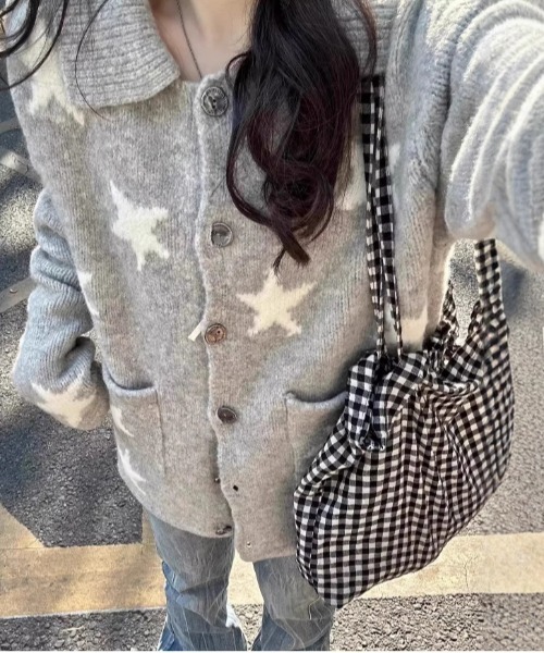ビッグシルエットの星柄カーディガン!大きめの星柄でインパクト大!グレー×ホワイトのカラーで派手になりすぎず合わせやすいアイテムです!ヒップが隠れるほどのオーバーサイズで体型カバーにも◎伸縮性があって動きやすくお出掛けにも最適です!【スタッフが着用してみました!】[スタッフA 155cm/49kg 着用サイズ:M]厚みのあるニットだから着心地が良く肌寒い時期に丁度良いです!ポケットも大きめで使いやすい♪★POINT★・Y2K・グランジファッション・韓国ファッション・バレエコア・ウィッシュコア・トレンドファッション◎商品と特徴◎・カジュアル・ガーリー・モード・キレイめ・星柄【WEGO ZOZOTOWN お買い物ガイド】▼商品のお気に入り登録♡をクリック!完売カラーの再入荷通知や、ラスト1点の通知、セールの通知をお知らせします。▼ブランドのお気に入り登録新商品や再入荷、クーポンやセール情報など、いち早くWEGOのお得な情報を受け取ることができます。▼最短で翌日お届け商品をカートに入れた後、注文内容の確認ページで「即日配送」を選択していただければ、最短でご注文した翌日にお届け致します。