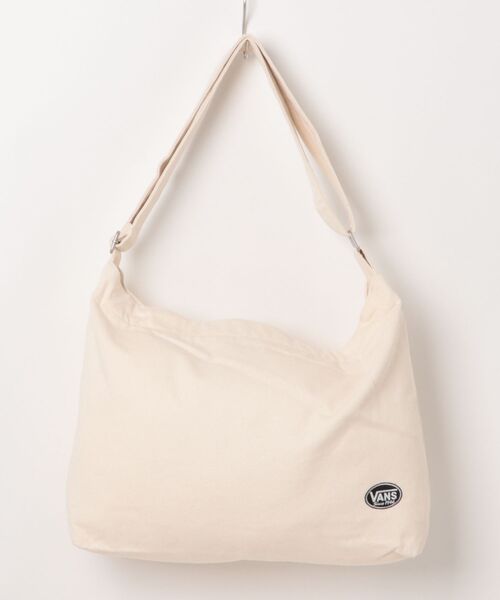 ミディアムウエイトのキャンバス・ショルダーバッグ。ニュースペーパーバッグとメッセンジャーバッグの要素を取り入れた汎用性の高さ。メインコンパートメントには内容物の落下の防ぐファスナー付きの蓋を採用。内側にはスマートフォンや、鍵などを入れられる吊りポケット。前後左右にオーバルロゴの刺繍のみというシンプルな外観。缶バッチやピンズなどで自分好みにカスタマイズしてください。※BLACKは水分が多い環境や、過度な擦れによる色移りすることがあります。