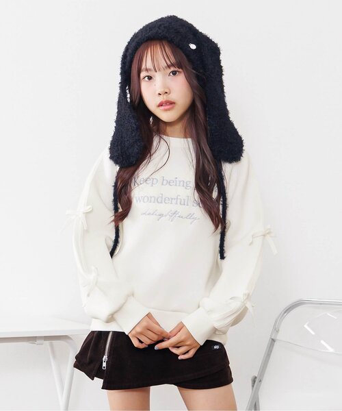 algy(アルジー)のトレーナー「ダンボール袖ラインりぼんトレーナー」。コーデが決まる!これを持っておけば間違いなしのトップスです◎XXS・・・125~135cmXS・・・135~145cmS・・・145~155cmM・・・155~165cm【 algy ーアルジー ー 】『おしゃれを楽しみたいティーンズのリアルクローズ』着たい 欲しい トレンド・・・全部そろう小中学生向けブランドです。【取り扱い表示】40℃を上限に洗濯機で洗濯、デリケートアイテムモード、ネット使用、漂白剤を使用禁止、色物は同系の色と一緒に、洗濯後直ちに取出し、タンブル乾燥不可、日陰で吊り干し、低温でアイロン、商業ドライクリーニング不可※商品により多少の誤差が生じる事がございます。あらかじめご了承下さい。※ご使用のパソコンやブラウザの環境により、実際の色とは多少異なる場合がございます。※モデル着用写真についてはイメージの為、実際の商品とカラーや仕様が異なる場合がございますので、商品画像をご覧ください。