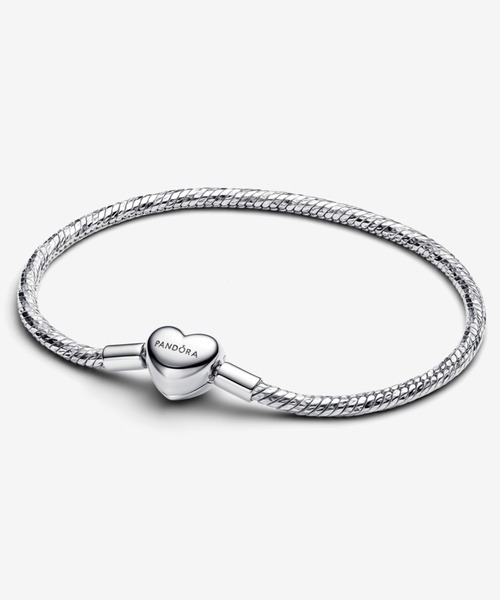 スターリングシルバーでつくり上げられたこのスネークチェーンブレスレットは、ハートシェイプの留め具をあしらったツイストチェーンが特徴です。<対応コレクション>Pandora Moments<サイズガイド>手首のサイズ:ブレスレットのサイズ14 cm :16 cm15 cm :17 cm 16 cm :18 cm17 cm :19 cm18 cm :20 cm※手首またはブレスレットのサイズが上下の中間にあたる場合は、一つ上のサイズを選ぶことをおすすめします。※最大18個のチャームをスタイリング可※チェーンは、使い始めてから1年ぐらい経過すると、身につける頻度や取りつけるチャームの数によって、1cm程度伸びる可能性があります。付属品:ジュエリーボックス(1点)※ボックスのパッケージについては予告なくデザイン・仕様が変更になる場合があります。※付属のジュエリーボックスのサイズをお選びいただくことは出来ません。<Pandoraのサステナビリティ>Pandoraはサステナビリティを強力に推進し、ジュエリーの材料として100%リサイクルした銀と金を使用しています。また、ショッパーなどの紙資材には適切に管理された森林から生産されたFSC®認証紙を使用しており、100%リサイクルが可能です。■保証についてZOZO納品書もしくは注文履歴画面にて確認できる購入日より1年間※ガラス、レザー繊維製品は6か月間★商品のお気に入り登録→【カートに入れる】右側の♡をクリック完売カラーの再入荷通知や、ラスト1点の通知、セールの通知も受け取ることができます。★ブランドのお気に入り登録→ブランドタグのページからお気に入りをクリック新作商品や再入荷などブランドのお得な情報を受け取ることができます。