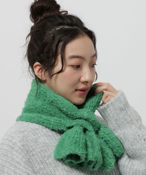 さっと着用できる、差し込みタイプのあったかマフラーたっぷり寄せたギャザーがフリル見えする可愛いティペット。伸縮性のあるもちもちの柔らかいニット素材を使用し、軽くてあたたかい着け心地のアイテムです。巻くだけでバランスが決まり、お出かけ前にさっと着用していただけます。コンパクトで持ち運びがしやすいため、室内で気軽に取り外しができるのも便利なポイント。差し色に使いやすいワインレッド(38)とグリーン(70)、ベーシックで大人っぽいアイボリー(51)の全3色展開。※サンプルにて撮影をしておりますので、実際の商品とは仕様や加工・サイズ等が若干異なる場合がございます。※屋外の光や照明の当たり具合で、実物と色味が異なって見える場合がございます。詳細画像の色味をご確認ください。 なお、商品の色や質感を出来るだけ忠実に再現するよう心掛けておりますが、パソコンなどの環境により、実物と若干異なる場合がございます。※写真を許可無くコピー・転用することは固くお断りします。