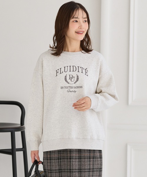 ソフトであったか『ハニぽか』トップス【デザイン】お洒落フォントのワンカラーロゴ刺繍で、カジュアルながら大人な雰囲気のデザイン。ヒップまで隠れる丈感とドロップショルダーのゆったりシルエットで体型もカバー。程よいボリューム袖でフェミニン感をプラス。【素材・機能】程よい厚みの綿混素材。裏起毛であたたかくソフトな肌触りの『ハニぽか』アイテム。【スタイル】デニムと合わせたカジュアルスタイルからチュールスカートと合わせたフェミニンスタイルまで、幅広い着回しに活躍。シアーハイネックなどをインナーをにしたレイヤードスタイルもおすすめ。品番:654-11-9729