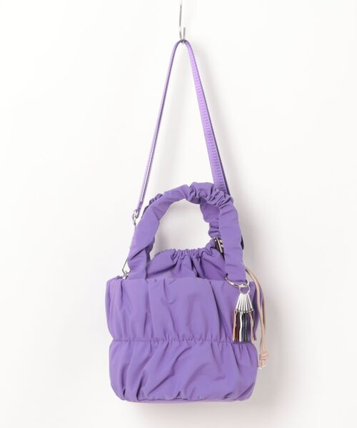 ぽっこりしたギャザー巾着2WAYトート。 本体とハンドルにギャザーを施し、ボンディングをしてふんわり柔らかく仕上げました。 ツイル感のあるポリエステル生地(リサイクル素材)を使用。 口元はカラーコードで開閉できる巾着トート仕様。 巾着を内側に折り込めば普通のトート仕様に。 フロント側には小さなポケットが! ワイヤレスイヤホンなど細かいものの収納に便利です。 さらに隠しマグネットがついているので小物を入れたあとに勝手にくっついてくれるので安心。 附属の光沢感のあるテープベルトは2WAY仕様にもでき、持ち物が多い時にも斜め掛け、肩掛けができます。 ■サイズ(cm) ハンドル ・43 肩ひもの長さ ・66-125 ●手作業での採寸の為、記述寸法より若干の誤差が生じる場合がございます。 【素材・色味について】 ●裁断によって模様の配置が写真と異なる商品がございます。 ●商品画像と実物ではモニター及び画像性能等の関係で多少色味に違いがございますので予めご了承ください。 ●合皮皮革等の生地は経年劣化します。 ●過剰な摩擦、湿った状態でご使用されますと他の衣類への色移り、色落ちする場合があります。