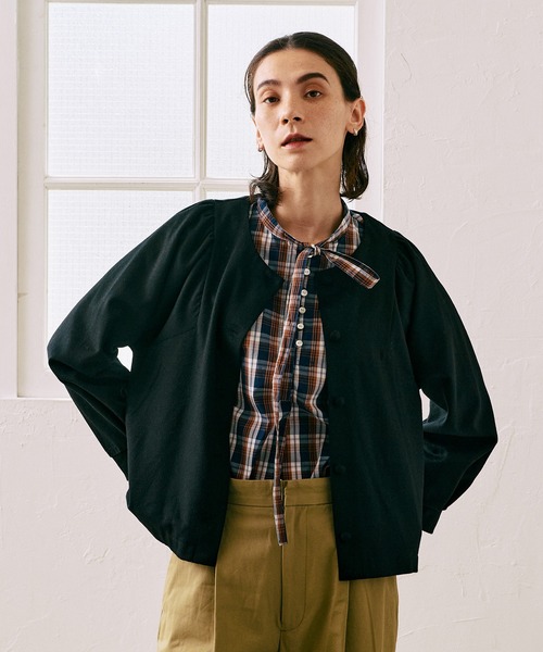 くるみボタンがポイントの圧縮ウールノーカラージャケット圧縮ウール素材を使用したノーカラージャケット。 肩のギャザーとくるみ釦がアクセントになり、ニームらしい上品なディテールが光ります。 秋はジャケットとして1枚で、冬はコートインのカーディガンとしても着まわせる万能アイテムです。コーディネート【ワイドパンツ】ワイドパンツと合わせて、ジャケットのコンパクトな丈感を活かした大人カジュアルスタイルに。【スカート】膝下スカートと合わせて、上品なフェミニンスタイルに。【デニム】デニムと合わせて、くるみ釦をちらりと見せる抜け感のあるカジュアルコーデに。※照明の関係により、屋外で撮影した写真の商品は、実際よりも色味が違って見える場合があります。またパソコン・スマートフォンなどの環境により、若干製品と画像のカラーが異なる場合もございます。予めご了承ください。実際の商品の色味は、スタジオ撮影の画像をご参照下さい。※商品画像はサンプルのため、色味やサイズ等の仕様に変更がある場合がございますので、予めご了承ください。アイテム詳細素材:ウール50%,ポリエステル50%サイズ: 【F】 着丈:N.P57cm,身巾:55cm,肩巾:30cm,天巾:19cm,袖巾:25.8cm,袖丈:60cm,裄丈:75cm,袖口巾:11.5cm,裾巾:55cm,袖口切替巾4.5cm====================裏地:なし透け感:なし生地の伸び:なし光沢感:なしケア方法:ドライクリーニング====================生産国:中国品番:52547001※取り扱い・ケア方法については、商品についている品質表示でご確認ください。