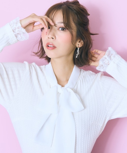 クラシカルなボータイデザインと袖口のレースは今年の旬顔スタイリングにオススメ! ニット調の素材なので、羽織のインに着てもOK。着こなしの幅が広がります。 ■デザイン 柔らかなニット調素材に顔周りを華やかに彩る大きなボータイと袖口から覗く繊細なレースが魅力です。 ■素材 伸縮性も抜群なニット調のカットソー素材は、やわらかな肌触りで着心地も抜群。 ■おすすめのスタイリング 一枚で主役級の存在感を放ちどんなボトムスとも相性抜群。 デニムと合わせてカジュアルダウンしたり、スカートと合わせてフェミニンに着こなしたり着回し力も◎ 愛されスタいリングを演出するとっておきの一枚です♡ <仕様> 透け感:ややあり(淡色) 伸縮性:あり(衿・レース部除く) 生地の厚み:普通 光沢感:なし 季節:秋・冬向き シルエット:普通 <洗濯方法> 手洗い <対応サイズ> L :バスト:86~94/ウエスト:69~77/ヒップ:92~100 LL :バスト:93~101/ウエスト:77~85/ヒップ:97~105 3L :バスト:100~108/ウエスト:85~93/ヒップ:102~110 4L :バスト:107~115/ウエスト:93~101/ヒップ:107~115 5L :バスト:114~122/ウエスト:101~109/ヒップ:112~120 ※こちらはヌードサイズです。 ※平置きのアイテムサイズとは異なる計測方法となりますのでご了承ください。 #ゆったり#体型カバー#二の腕カバー #大きいサイズ#プラスサイズ#大きいサイズレディース #M#L#LL#3L#4L#5L 【気になる商品はお気に入り登録がおすすめ】 ▼商品のお気に入り登録 完売カラーの再入荷通知や、ラスト1点の通知、セールの通知などお得な情報が受け取れます。 ▼ブランドのお気に入り登録 新商品や再入荷など、ブランドのお得な情報をいち早く受け取ることができます。 【marun】 自分でも、周りからも「可愛い」と思ってもらえる ぽっちゃりさんのための愛されフェミニン服 ▼公式Instagram @marun___official 公式インスタグラムにてプラスサイズモデルさんの着用コーデや動画など随時更新しております。 是非チェックしてみてください♪