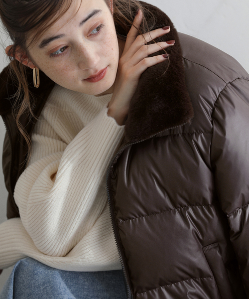 【2025AW】La Totalite襟元と袖口裏にエコファーをあしらったショートアウター。肌に触れる部分にふわふわのファーを配することで、暖かさだけでなく心地よい着用感も実現しました。光沢感のある表地が、ファーの質感と美しく調和し、鮮度のある洗練されたダウンスタイルを叶えてくれます。ヒップにかかる絶妙な着丈はどんなボトムともバランスが取りやすく、後ろウエスト部分のドロスト仕様でシルエット調整も可能。きちんと感もカジュアルさも兼ね備えた、大人のための万能アウターです。**********************透け感:透け感なし裏地:あり伸縮性:ややあり光沢感:あり生地の厚さ:厚い**********************【スタッフ着用コメント】《スタッフ名:mizuki》身長:160cm/体型:普通/普段サイズ:S~M/着用サイズ:38サイズ感:38で肩回りがジャストサイズ。身体に程よくフィットしてくれるので暖かさも抜群でした。素材感:光沢のあるダウンジャケット。襟元や手首のファーは滑らかで柔らかな肌触りでした。着心地:生地は厚手ですが羽織るとそこまで重みは感じませんでした。**********************※お取り扱いについて【ブラック】着用中の摩擦や汗、水などで濡れたことによる他のものへの色移りにご注意ください。※取り扱いについては、商品についている品質表示でご確認ください。※照明の関係により、実際よりも色味が違って見える場合があります。またパソコン・スマートフォンなどの環境により、若干製品と画像のカラーが異なる場合もございます。※商品の色味は、商品アップ画像をご参照ください。着用モデル身長:164cm 着用サイズ:38本体:ドライクリーニング