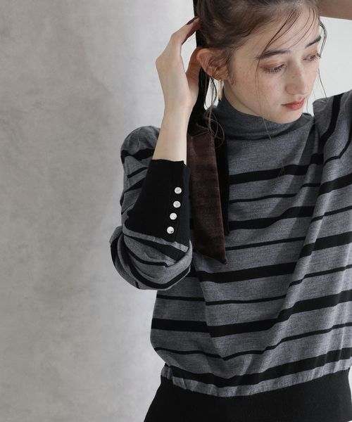 【2025AW】La Totalite繊細な細番手ウール糸を使用し、上品で滑らかな肌触りが魅力のハイゲージニット。洗濯機で洗えるウォッシャブル仕様ながら、編み目の美しさが際立つ仕上がりです。スタイリングのアクセントになるボーダー柄は、落ち着いた配色で大人のカジュアルスタイルにぴったりです。**********************透け感:透け感なし裏地:なし伸縮性:あり光沢感:なし生地の厚さ:普通**********************【スタッフ着用コメント】《スタッフ名:mizuki》身長:160cm/体型:普通/普段サイズ:S~M/着用サイズ:フリーサイズ感:襟元、手首、腰には適度なフィット感あり。素材感:滑らかな肌触りです。敏感肌ですが、素肌に触れてもチクチクしません。着心地:身頃や腕周りには適度なゆとりがあり動きやすいです。**********************※取り扱いについては、商品についている品質表示でご確認ください。※照明の関係により、実際よりも色味が違って見える場合があります。またパソコン・スマートフォンなどの環境により、若干製品と画像のカラーが異なる場合もございます。※商品の色味は、商品アップ画像をご参照ください。着用モデル身長:164cm 着用サイズ:フリー本体:手洗い可能