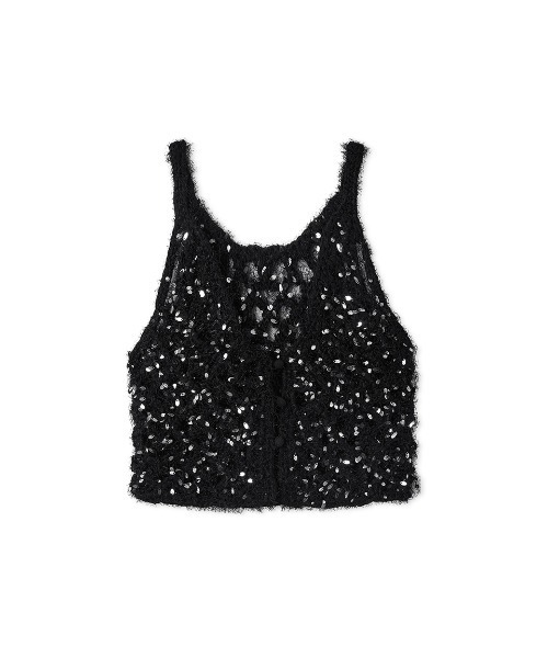 【Design/Styling】コーディネートを華やかに格上げしてくれる、スパングルニットキャミ。前後着用可能で、釦あきのとVネックとクルーネックからお選びいただけます。絶妙な丈感とフィットしすぎないシルエットで、様々なアイテムとのレイヤードが楽しめます。前後両方前で着用できる2WAY仕様で、着こなしの幅も広がります。①透け感:あり②生地の厚さ:薄手③裏地:なし④伸縮性:あり前後着用可能※照明の関係により、実際よりも色味が違って見える場合があります。またパソコン・スマートフォンなどの環境により、若干製品と画像のカラーが異なる場合もございます。予めご了承ください。商品の色味は、商品単品画像をご参照下さい。 ※商品画像はサンプルのため、色味やサイズ等の仕様に変更がある場合がございますので、予めご了承ください。