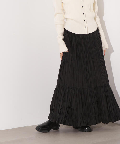 <petit size>PSサイズとは....通常のSサイズやMサイズから着丈などの長さを短くリサイズし、150cm前後の低身長さんにもバランスよく着用いただけるサイズに仕上げています。限定店舗のみの展開です。PSでのサイズ表記になっています。ランダムなプリーツがこなれ感のあるティアードスカート。動きやすい軽やかな素材感なので普段使いにもおすすめです。カットソーやスウェット、スニーカーとの相性も抜群で、ラフに着てもサマになるのが嬉しいポイント。ウエストは楽ちんなゴム仕様で、ストレスフリーなはき心地です。<素材>光沢感の少ないカジュアルなブロード生地を使用しています。<詳細>仕様・開閉なし裏地・あり透け感・なし / 光沢・なし / 伸縮性・なし生地の厚さ・普通●取り扱いについては、商品についている品質表示でご確認ください。●撮影はサンプル商品で行っている為、仕様とサイズが異なる場合がございます。●スタジオ及び屋外で撮影した着用画像は、光の当たり具合やご覧のモニターによって色味が違って見える場合があります。予めご了承ください。●生産時期により色・素材・サイズ感など多少異なる場合がございます。予めご了承ください。〇返品・キャンセルについて・着用・洗濯後の返品・ご交換は致しかねます。・商品到着後、着用または使用前に商品を確認して頂きますようお願いいたします。≪お買い物をよりお楽しみいただくために!≫・「商品のお気に入り登録」再入荷通知や、ラストの通知、セール通知も受け取ることができます。・「ブランドのお気に入り登録」新商品や再入荷をはじめ、タイムセールやクーポンなどいち早くブランドお得な情報を受け取ることができます。