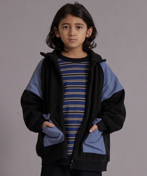 切替デザインがクールな印象のフリースジップトップスが新登場です。ゆったりとしたサイズ感が今っぽく、程よくトレンドを差し込んだおしゃれなアウターに仕上がりました。【スタイリング】ゆったりとしたシルエットで中にTシャツやスウェットを着ても楽に羽織る事ができます。毎日の通園通学にもおすすめな1着です。【ポケット】あり(両サイド)【伸縮性】あり【透け感】透けない【クリーニング】洗濯機洗い可(ネット使用)【裏地】なし【濃色品・色落ち色移り】 濃色品は、色落ち・色移りをする恐れがあります。摩擦(特に湿った状態での摩擦)や汗や雨などで他の衣料や下着(特に白物)に色移りしますので、十分ご注意ください。 モニター・環境等により実際の商品と色味が多少異なって表示される場合がございます。 また、生産時期により色味が若干異なる場合がございます。予めご了承ください。