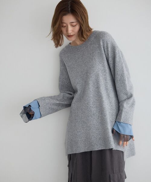 袖にカットソー生地とチュール生地をドッキングした、レイヤード風デザインのニットプルオーバー。肌触りの良いミドルゲージで編みたて、軽やかな着心地です。ゆったり着用できるサイドスリット入りのチュニック丈がこなれ感を演出。シンプルながらも個性あるディテールが目を惹くアイテムです。透け感[ややあり]チュール部分生地の厚さ[普通]光沢感[なし]伸縮性[あり]裏地[なし]ポケット[なし]※モデル着用画像は、光の当たり具合で色味が違って見える場合がございます。※お使いのモニター環境によって商品の色味が違って見える場合がございます。 ̄ ̄ ̄ ̄ ̄ ̄ ̄ ̄ ̄ ̄ ̄ ̄ ̄ ̄ ̄ ̄ ̄ ̄ ̄●Editt by YECCA VECCA ●(エディット バイ イェッカ ヴェッカ)着心地のよいシルエットに都会的でエッジの効いたディテール使いで仕上げたモードなアイテム。YECCA VECCAというフィルターを通して編集する(=Edit)こだわりを持ち続ける大人の女性のためのカジュアルクローズを提案。▼商品のお気に入り登録がおすすめです ▼商品ページ内のハートマークをクリック。完売時の再入荷や、最後の1点の通知、コーディネート画像がアップされたとき、お得なお値下げの際の通知を受ける事ができます。【お知らせ】ページでも通知が確認できます。 ̄ ̄ ̄ ̄ ̄ ̄ ̄ ̄ ̄ ̄ ̄ ̄ ̄ ̄ ̄ ̄ ̄ ̄ ̄