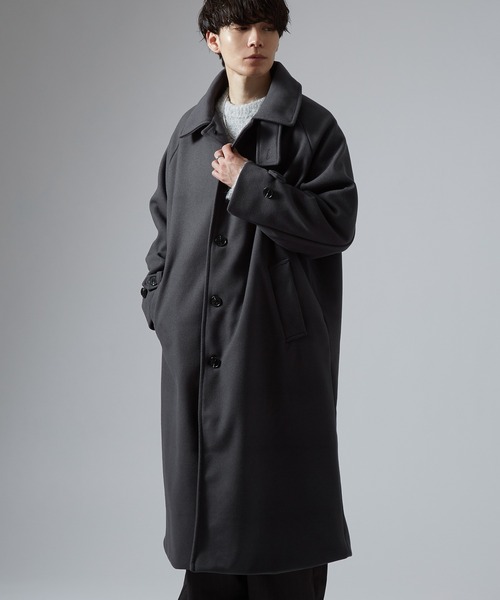 ウールライクで高見え ビッグシルエットの極上コート●肩幅や身幅にゆとりを持たせトレンド感のあるビッグシルエット●裾に向かって広がる上品で洗練されたシルエット●メルトンウールのような高級感を演出し、ポリエステルで軽量な仕上がり●ブラック、グレー、ブラウンと合わせやすいカラー展開ゆったりとしたビッグシルエットなので厚手のニットやパーカーの上からもストレスなく羽織れます。肩周りのラグランスリーブが動きやすさと今っぽいリラックス感を提供します。ベーシックな開襟スタイルは上品なクラシックコーデに、襟を立てたスタンドカラーはモードで都会的な防寒スタイルに。日々の気分やシーンに合わせて全く違う表情が楽しめます。