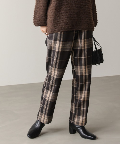 ■POINT クラシックなチェック柄にモードなエッセンスをプラスしたテーパードパンツ。伸縮性のある厚手カットソー素材で、スタイルアップとリラックス感を両立。フロントのタックが上品さを演出し、バックゴム仕様で動きやすさも◎。通勤から休日まで幅広く活躍する万能アイテムです。 ■FABRIC ポリエステル素材のカットソー素材。 ■COORDINATE 白ブラウスとジャケットを合わせればオフィスにも使えるきれいめスタイルに。休日はニットやスウェットとスニーカーで大人カジュアルに。レザージャケットやブーツを合わせれば、モード感のある着こなしも楽しめます。 ………………… 透け感:なし 裏地:なし ………………… ★商品のお気に入り登録 登録すると、完売しても再入荷時に通知を受け取ることができます。 ほかにもお得な特典があるかもしれません♪ ★ブランドのお気に入り登録 新商品や再入荷などの情報を受け取ることができますので、是非ご登録ください♪