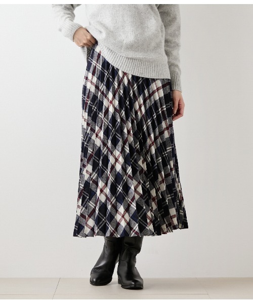 大人の装いを引き立てる、ニューヨーカータータン温もりを感じるウール素材に、トラッドなニューヨーカータータンが映えるプリーツスカート。シンプルなトップスと合わせるだけで装いが華やぎ、縦長効果も発揮してくれる優秀アイテムです。また、あえてバイアス状にしたニューヨーカータータンが柔らかな印象を与え、カジュアルにはもちろんきれいめな着こなしにもマッチします。同素材のケープストール(品番:51116161)のご用意もございます。■素材ニューヨーカータータンを大きめのピッチで華やかに表現しました。生地は甘撚り糸を使用してざっくりと織った、エターミンと呼ばれる平織物。ナイロン糸にウールを混紡し、強撚することで程よいシャリ感と凹凸を持たせています。■デザインロング丈のプリーツスカート。細かく均一な幅で折りたたまれたアコーディオンプリーツは、縦のラインを強調しシルエットをすっきり見せる効果も。チェック柄に立体感がプラスされ、着こなしを表情豊かに彩ります。裏地あり。ポケットなし。■シーズン2025年秋冬商品