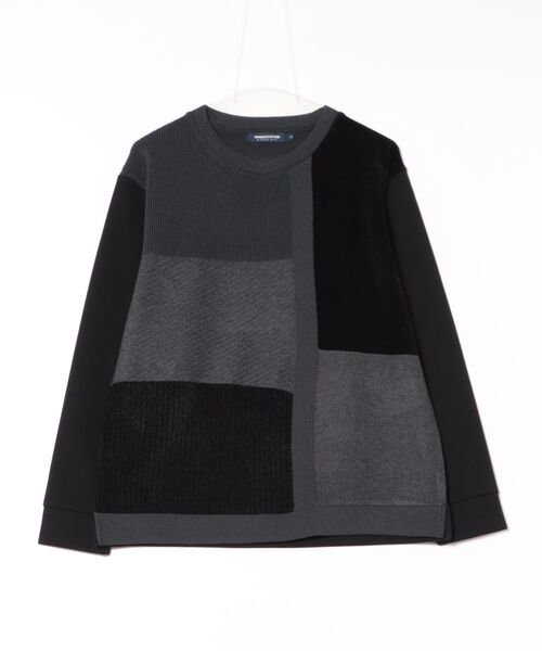 ブランドの人気定番デザインのニット×ポンチ パネル切り替え クルーネックロンTが新たなデザインで新登場 ダンボール素材と前身頃にストレッチ性に優れたPBT糸を使用したカラーブロック仕様のドッキングスウェット。 1枚でのスタイリングはもちろん、アウターのインナー使いとしてアクセントになる便利アイテム。 【デザイン/素材】 異なる素材で切替を施し、シンプルながらもしっかりと存在感もあります。 秋口のジャケットやカーディガンのインナー使いに、また1枚で着用しても着こなしに差がつく1枚となります。