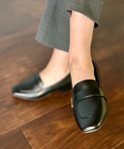クラシックなローファーデザインをパンプスに落とし込んだ、上品かつ旬なスタイルが楽しめる一足です。シャープな印象のスクエアトゥと、アクセントとなるベルトが、足元をエレガントに演出します。 安定感のある4cmのチャンキーヒールは、スタイルアップを叶えながらも歩きやすさを両立。さらに、ふかふかの柔らかインソールが足への負担を軽減し、雨の日も安心の生活防水機能も備えているので、長時間のお出かけや通勤でも快適な履き心地が続きます。 きれいめなパンツスタイルから、フェミニンなスカートまで、幅広いコーディネートに合わせやすい万能アイテムです。