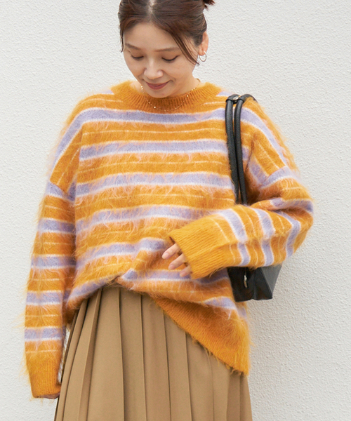 JOURNAL STANDARDマルチボーダー柄のシャギーニットが登場。カラフルな配色が目を惹き、1枚でも着映えが叶う主役級の華やかニット。オーバーサイズシルエットなので着るだけで抜け感が出る秋口から真冬まで様々なスタイリングが楽しめるアイテムです。**********************透け感:なし裏地:なし伸縮性:あり光沢感:なし生地の厚さ:普通**********************【スタッフ着用コメント】《スタッフO》年齢:30代前半/身長:158cm/体型:普通/普段サイズ:M/着用サイズFREEサイズ感:ゆったりしたサイズ感素材感:毛足がある温かみのある素材着心地:肌触りが良く着やすいです※あくまでも個人の感想です。**********************※取り扱いについては、商品についている品質表示でご確認ください。※照明の関係により、実際よりも色味が違って見える場合があります。またパソコン・スマートフォンなどの環境により、若干製品と画像のカラーが異なる場合もございます。※商品の色味は、商品アップ画像をご参照ください。本体:ドライクリーニング