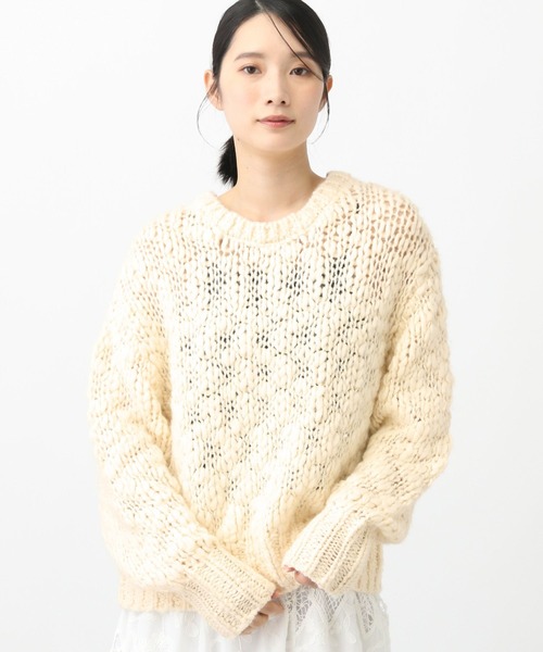素材を活かしたミニマムデザインパンツ合わせもスカート合わせも着こなしやすいニットプルオーバーーーー【素材】大きなスラブが特徴の糸を使用。ぽこぽことした凸凹感と、柔らかな風合いが特徴です。【デザイン】コーデに取り入れやすいミニマムデザインのニットプルオーバー。素材を活かしたシンプルデザインに、レイヤードも楽しめる襟ぐりはクルーネックデザイン。カジュアルにも女性らしくも着こなせる一着です。ーーー【スタイリング】デニムやチノパンと合わせた大人カジュアルな着こなしや、フレアスカートやナロースカート合わせの女性らしい着こなしがおすすめ。クルーネックなので、シャツやター統計のインナーを合わせていただいても素敵です。