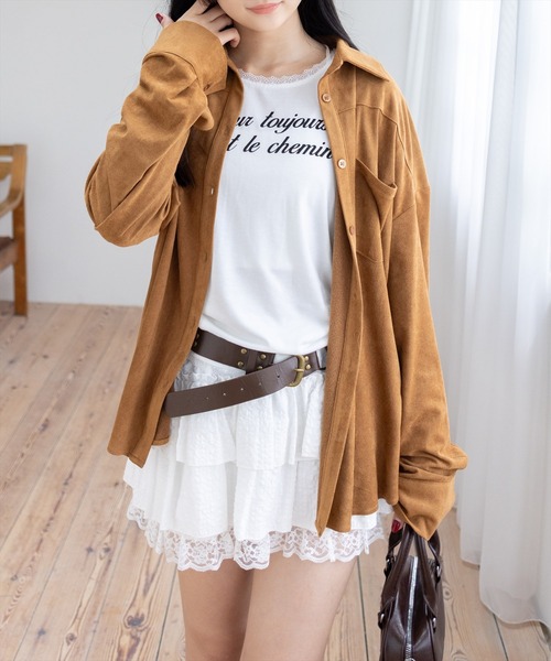 秋冬コーデに欠かせない!フェイクスエードシャツ(セット可)【デザイン】柔らかな肌触りとマットな質感で、着るだけでこなれ感を演出してくれます。オーバーサイズシルエットで羽織りとしても、ボタンを閉じてトップスとしても着られる万能アイテム◎デイリー使いからお出かけスタイルまで、幅広いシーンで活躍する一枚です。【素材感】着心地の軽いポリエステル素材伸縮性:なし/ 透け感:なし / 裏地:なし 手洗いによる洗濯可 / ドライ・ウェットクリーニング可【コーディネート】セットアイテムのスカート(商品番号:203G1133852/2段フリルティアードスエードミニスカート)と合わせていただくのがおすすめ◎タートルネックやニットワンピースに重ねて、季節感を楽しむレイヤードスタイルも♪【※お取り扱い上のご注意】1:モニター環境等により実際の商品と多少色味が異なって表示される場合がございます。予めご了承下さい。2:屋外で撮影された商品は、天候により多少実際のカラーと異なる場合があります。商品のカラーはトルソー(マネキン)の商品画像をご参照ください。3:濃い色の商品は、お洗濯や摩擦等による移染にご注意ください。4:末永くご愛用頂く為に、アテンションタグ・洗濯ネームを必ずご確認の上、着用又はお取り扱い下さい。5:生産時期により、色、サイズ、デザイン、素材の質感が多少が異なる場合がございます。あらかじめ御了承下さいませ。
